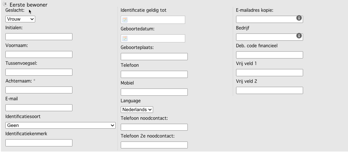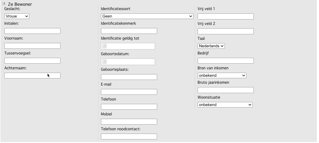 De meeste velden spreken voor zich. Het gaat hier om NAW gegevens van de hoofdhuurder.
