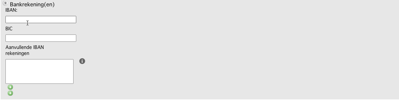 Aanvullende IBAN rekeningen: Om automatisch matchen van betalingen (indien gebruikt wordt gemaakt van deze functionaliteit) te optimaliseren kunnen hier aanvullende rekeningnummers worden toegevoegd.