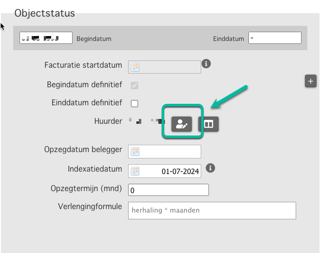 Op de objectpagina staat bij de objectstatus het icoon om een huurder aan te maken en kies vervolgens voor "nieuwe commerciële huurder invoeren":