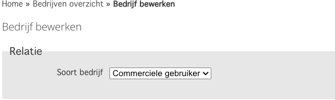 Of ga naar "Relaties -> bedrijf toevoegen" en kies daar voor het toevoegen van een Commerciele gebruiker.
