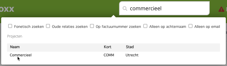 Om een servicepartij, technische relatie of een ander bedrijf te koppelen aan een project. Voer je in de zoekbalk het gewenste project in, klik vervolgens op het project. Let op dat je hier niet voor de huurder of het object kiest wanneer je de servicepartij voor het gehele project wil koppelen en niet slecht een deel hiervan.