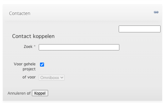 Wanneer het project is geopend, vind je in de rechter kolom het kopje ‘Contacten’. Via de paperclip kun je hier een contact koppelen: