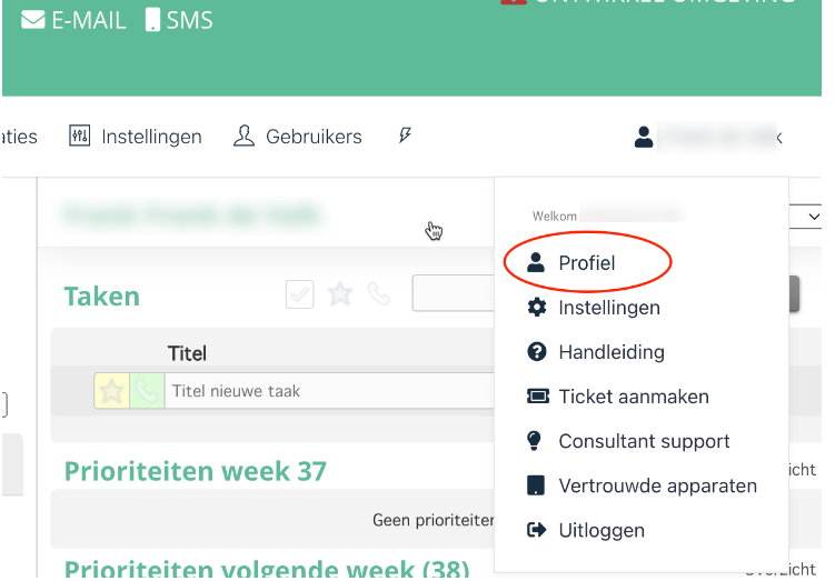 Om tweefactorauthenticatie voor een gebruiker in te stellen moeten onderstaande stappen gevolgd worden: