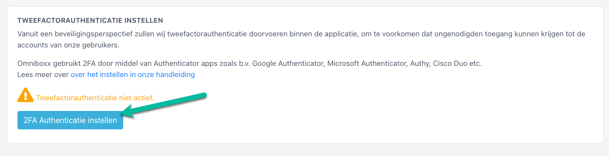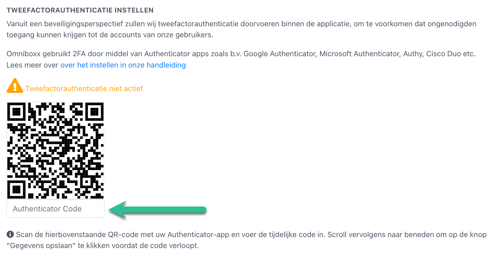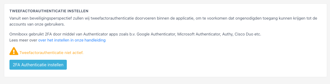 | Tip: Er werken diverse authenticator apps met deze 2FA oplossing. Gebruikt je bijvoorbeeld al Microsoft Authenticator, Cisco Duo, Authy of een andere app dan kan je Omniboxx toevoegen aan deze app. |
