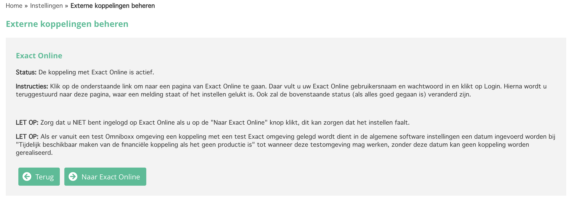 Om Exact Online te koppelen aan Omniboxx dient u: