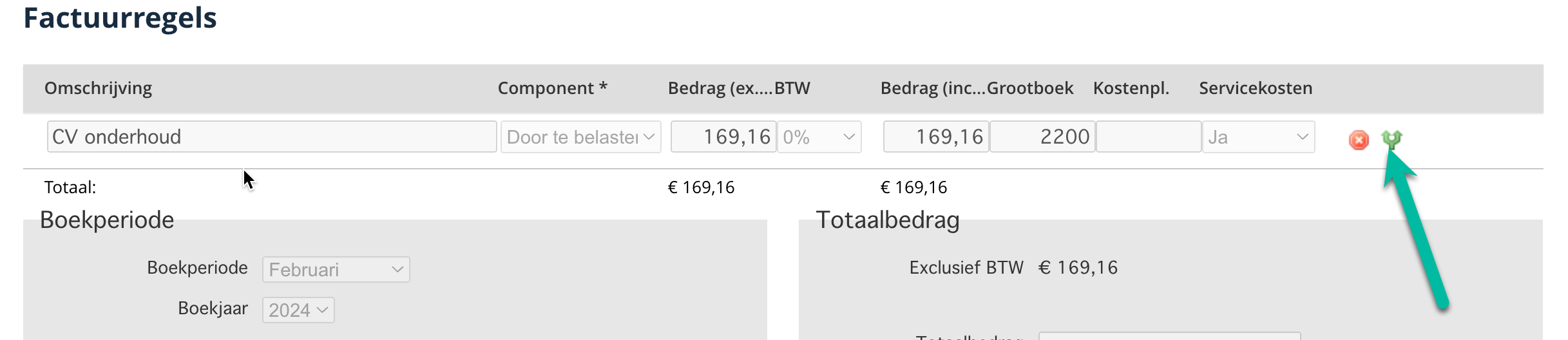 Deze toewijzing moet per factuur-/component-regel op de inkoopfactuur worden uitgevoerd.