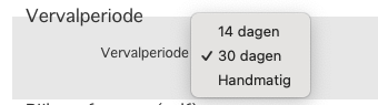De vervalperiode staat standaard op 30 dagen, maar is aan te passen naar 14 dagen of handmatig (vrij invulbaar).