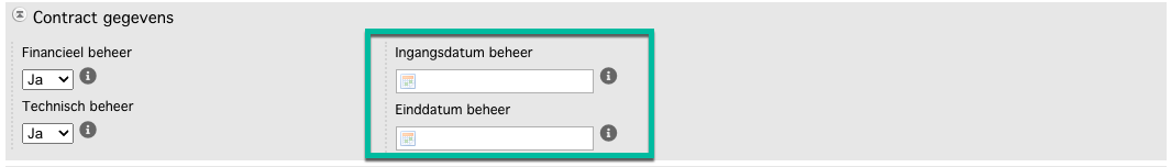 De "ingangs- en einddatum beheer" staat bij de "Contract gegevens" op de beleggerspagina: