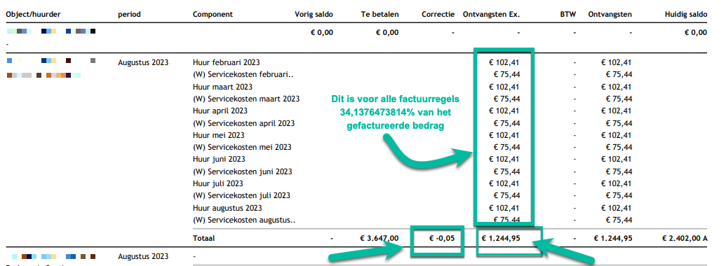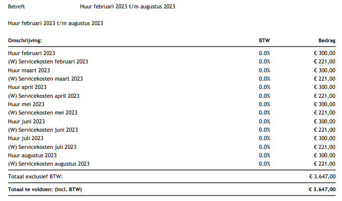 Huurder X heeft in augustus 2023 een factuur ontvangen met meerdere component/factuurregels:
