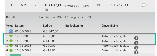 In dit geval is er 830 + 415 (= 1245) van de gefactureerde 3647 euro betaald.