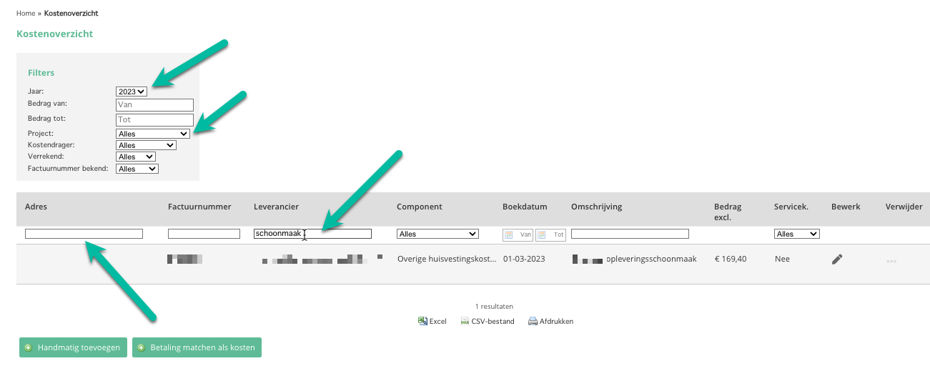 Als op basis van de overzichten blijkt dat er facturen met servicekosten missen, in zijn geheel of toegedeeld aan een specifiek project of object, kunnen aan aantal stappen genomen worden.