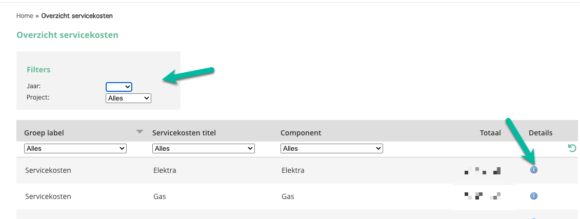 Ga voor beide overzichten naar “Financieel -> Servicekosten” .