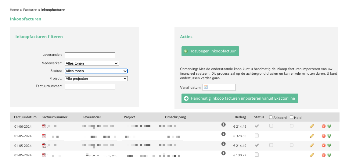 - Opzoeken missende inkoopfactuur in overzicht inkoopfacturen
