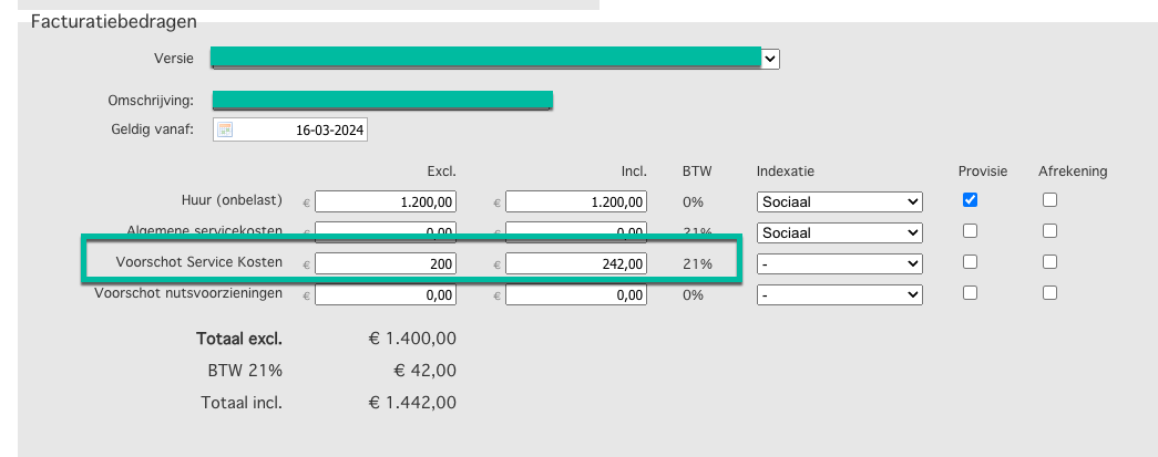 - Servicekosten instellingen algemeen