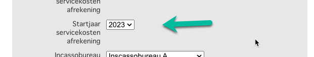 Per project is in te stellen wanneer het laatste afrekenjaar is geweest, stel het juiste jaar per project in: