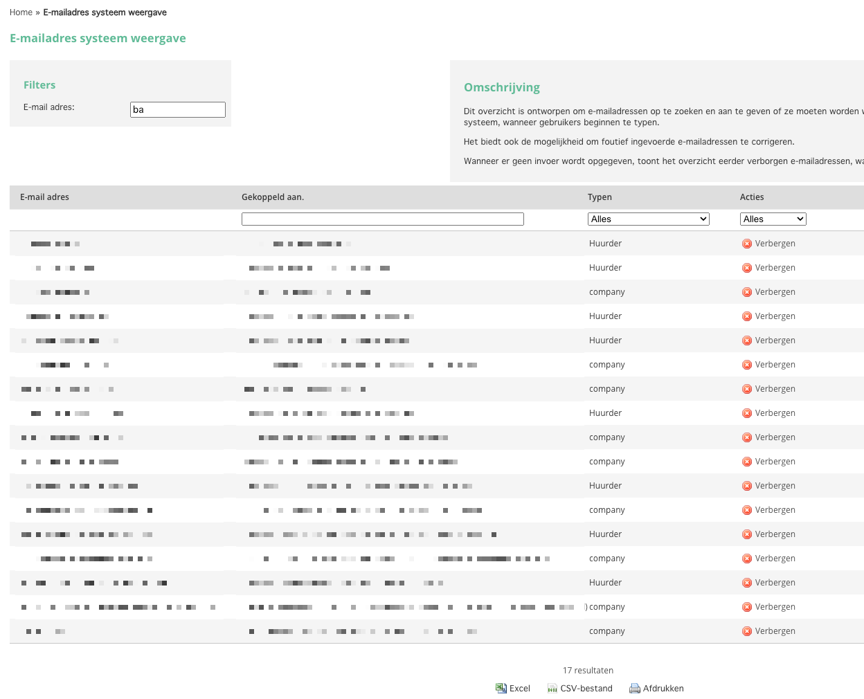 Ook kan een e-mailadres van een oud-huurder in de suggestielijst staan terwijl de Omniboxx-gebruiker deze suggestie eigenlijk helemaal niet meer wil krijgen.