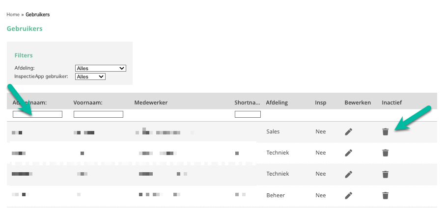 Klik vervolgens op het (prullenbakje)icoon in de kolom "Inactief".