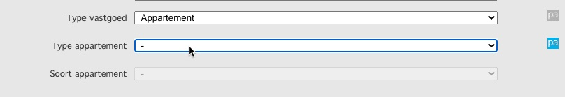 Onder het kopje "BOUW" met voortaan ook bij Type vastgoed gespecificeerd worden of het om een appartement of woonhuis gaat.