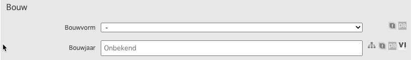Onder het kopje "BOUW" zijn bouwvorm en bouwjaar verplicht:
