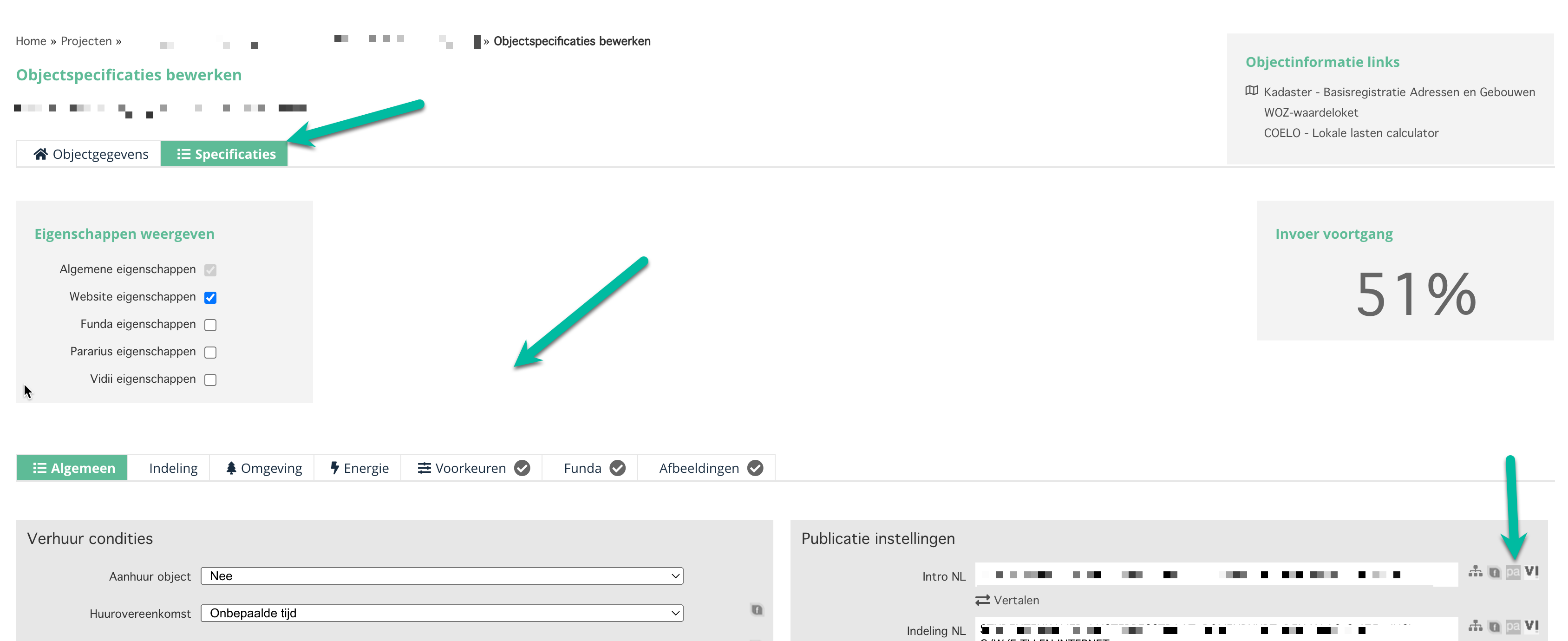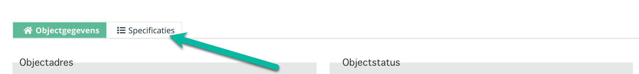 Ga naar het betreffende object en klik op bewerken objectgegevens (via het potloodje). Klik vervolgens op de objectpagina op het tabblad specificaties: