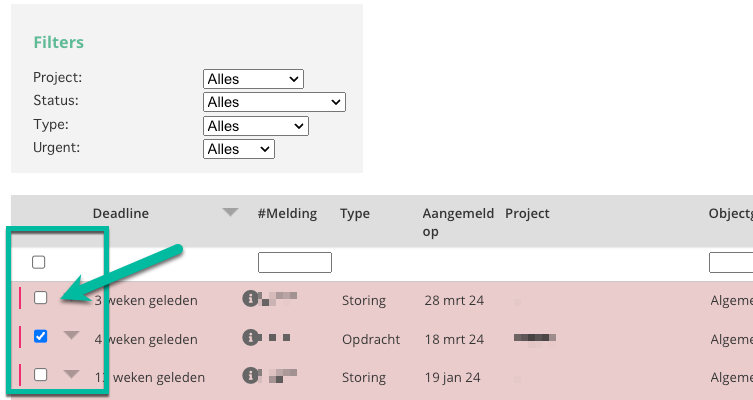 Wanneer de instelling aan staat is dat zichtbaar doordat er voor de meldingen checkboxen staan om meerdere meldingen tegelijkertijd te kunnen bewerken.