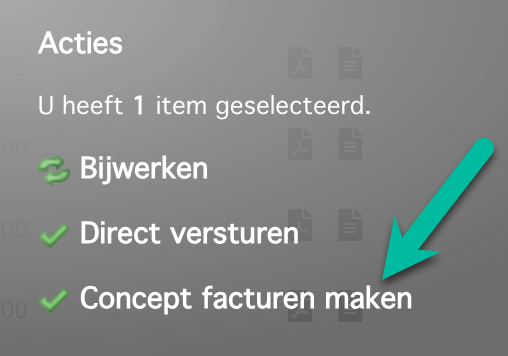 De concept beleggerafrekening komt klaar te staan als concept handmatige factuur (ga naar "facturen -> handmatige facturen").