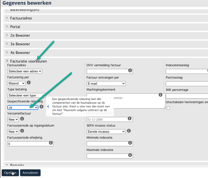 Ga voor het instellen van de keuze naar de huurderspagina, bij het bewerken van de huurder naar het tabblad "facturatie voorkeuren".